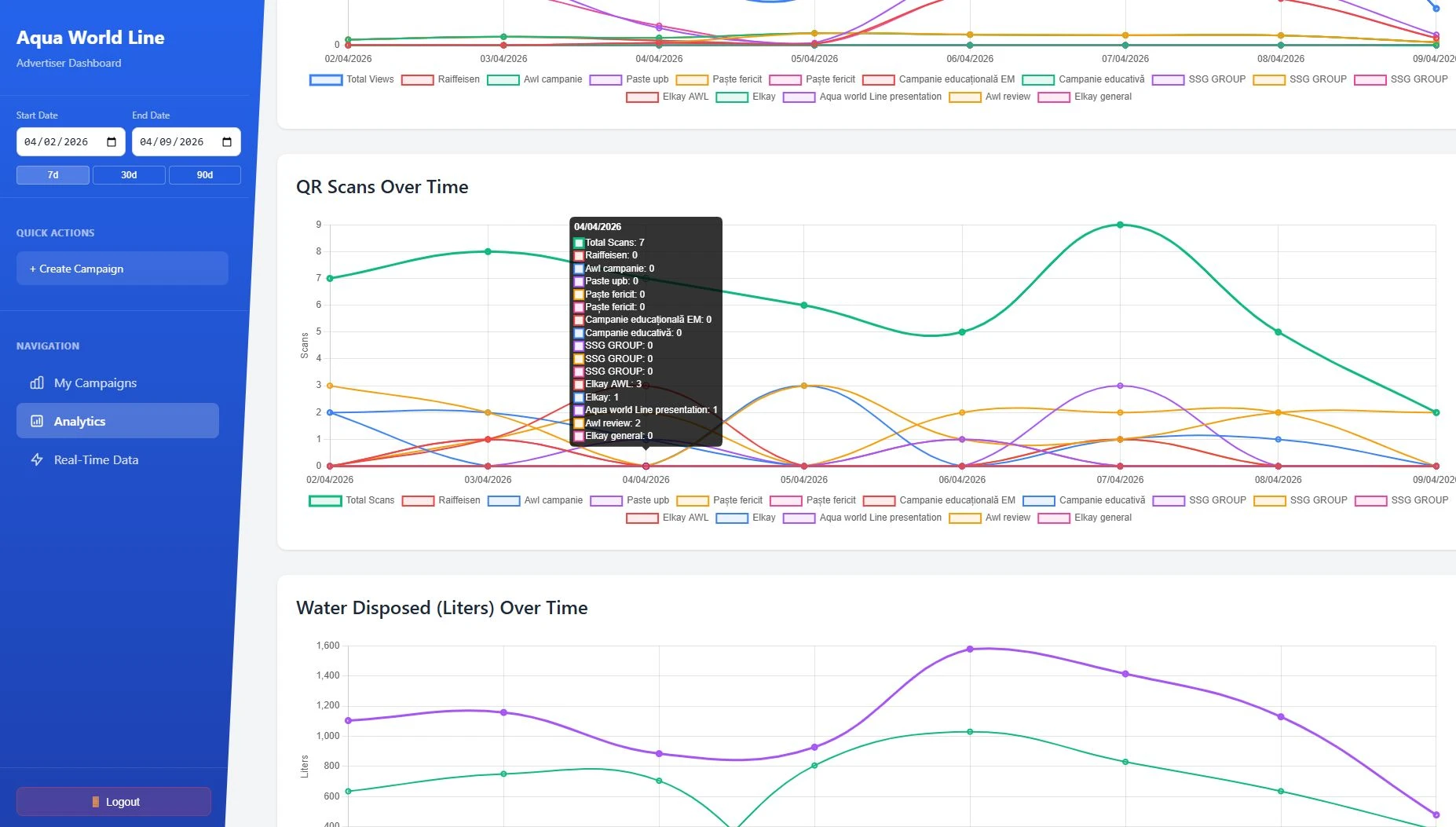 - Litres of water dispensed