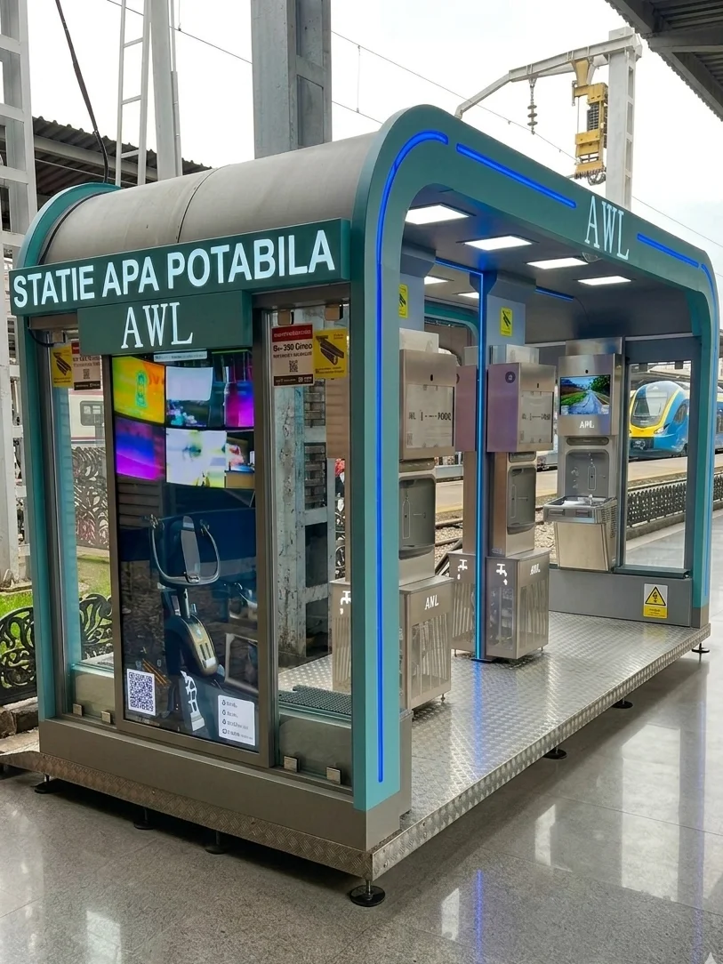 Aqua Media Station (AMS) este o soluție premium destinată instituțiilor care aleg să ofere comunității apă potabilă gratuită, filtrată și răcită, printr-un sistem no touch, pe senzor, sigur, igienic și adaptat spațiilor publice moderne.